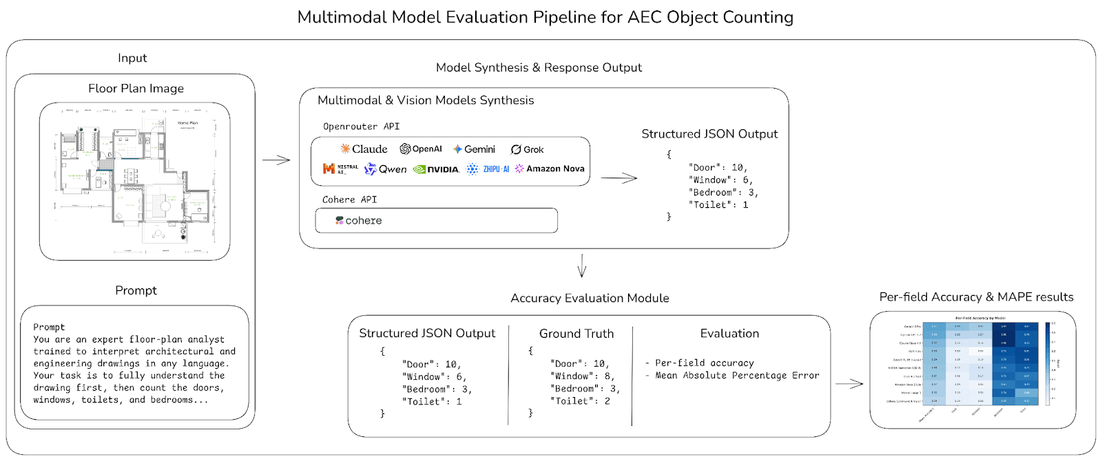10 state-of-the-art multimodal & vision models evaluated across two complementary benchmarks: object counting (120 floor plans) and document QA (192 questions across 21 drawings).